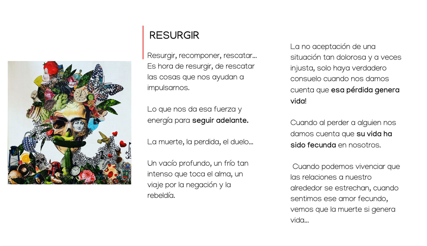 Soy una artista que busca entregar obras creadas sensiblemente desde el alma y que dan respuesta a procesos interiores y exteriores.